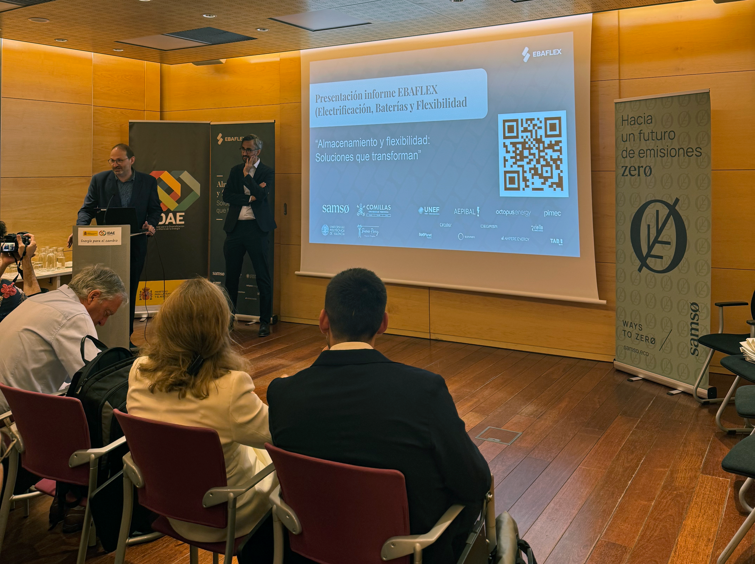 Ayer por la mañana se presentó, en la sede del Instituto para la Diversificación y Ahorro de la Energía (IDAE), en Madrid, el informe EBAFLEX, un estudio clave que aborda los retos y oportunidades vinculados a la electrificación, el almacenamiento con baterías y la flexibilidad del sistema eléctrico. El evento reunió a más de 80 personas del sector energético, instituciones públicas y empresas especializadas.